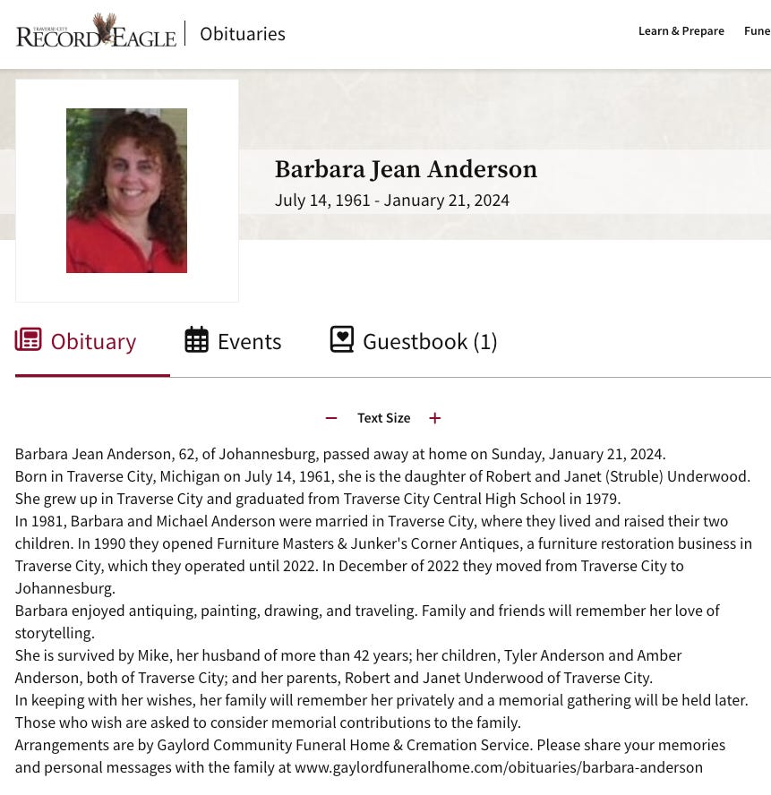 Barbara UnderwoodJan. 21, 2024Oct 22, 2024ShareThanks for reading Traverse City Class of 1979 Memorial! This post is public so feel free to share it.SharePreviousNext