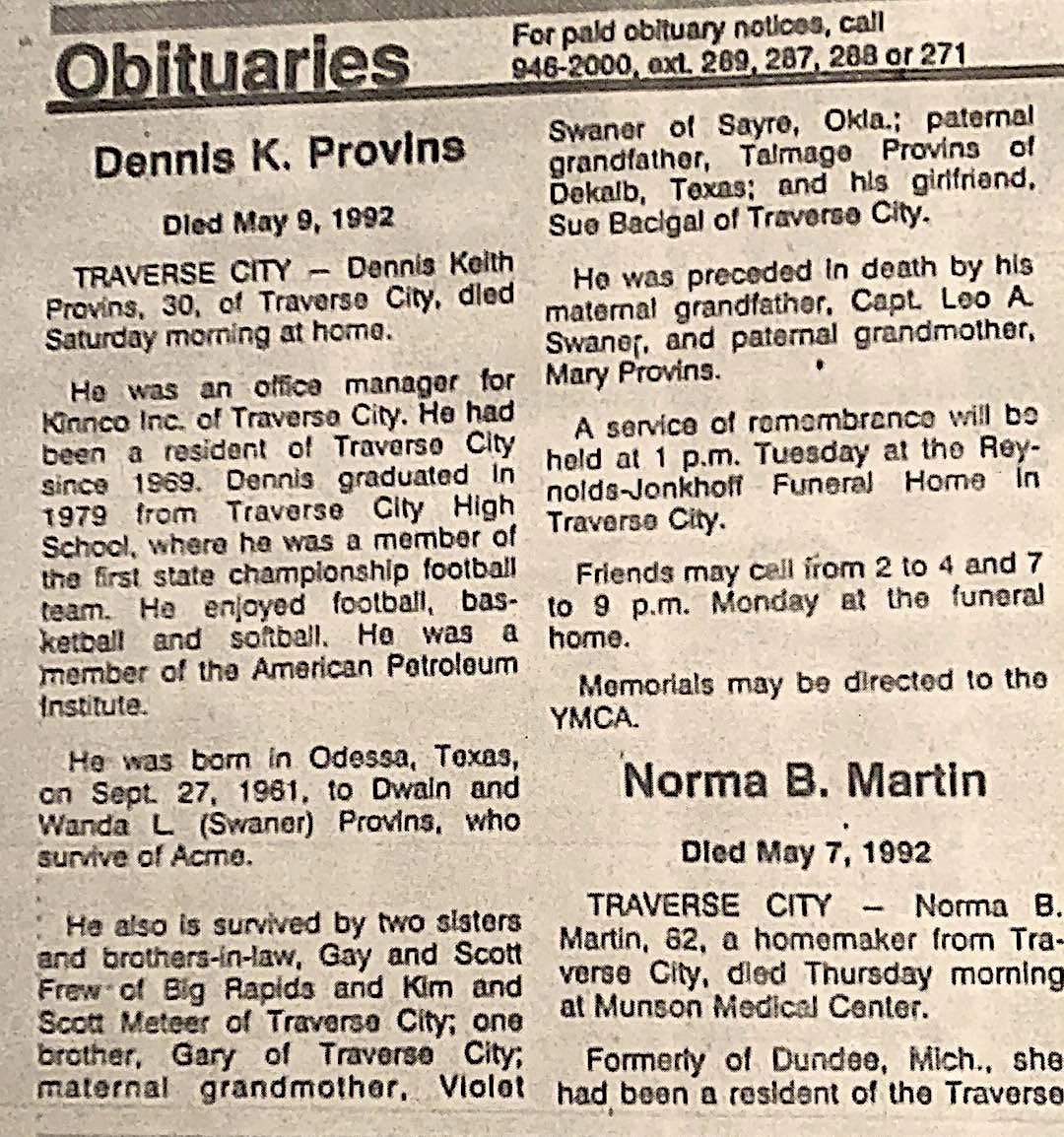 Dennis ProvinsMay 9, 1992Oct 17, 2024ShareThanks for reading Traverse City Class of 1979 Memorial! This post is public so feel free to share it.SharePreviousNext