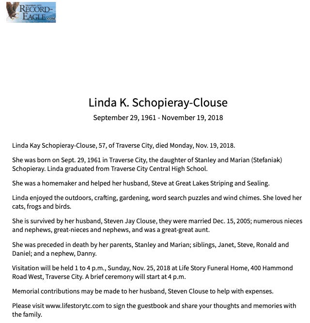 Linda SchopierayNov. 19, 2018Oct 21, 2024ShareThanks for reading Traverse City Class of 1979 Memorial! This post is public so feel free to share it.SharePreviousNext