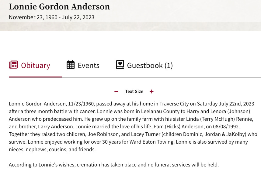 Lonnie AndersonJuly 22, 2023Oct 22, 2024ShareThanks for reading Traverse City Class of 1979 Memorial! This post is public so feel free to share it.SharePreviousNext