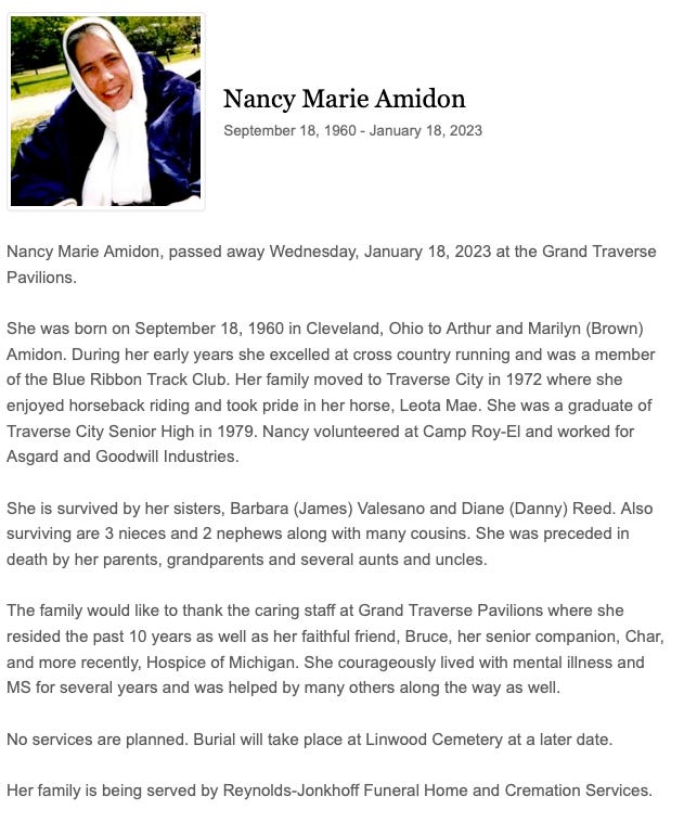 Nancy AmidonJan. 18, 2023Oct 22, 2024ShareThanks for reading Traverse City Class of 1979 Memorial! This post is public so feel free to share it.SharePreviousNext