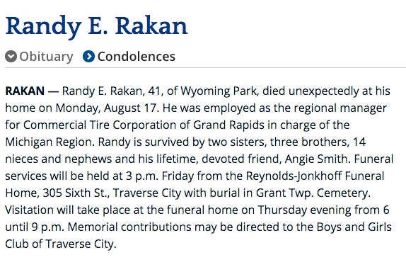 Randy RakanAug. 17, 2003Oct 18, 2024ShareThanks for reading Traverse City Class of 1979 Memorial! This post is public so feel free to share it.SharePreviousNext