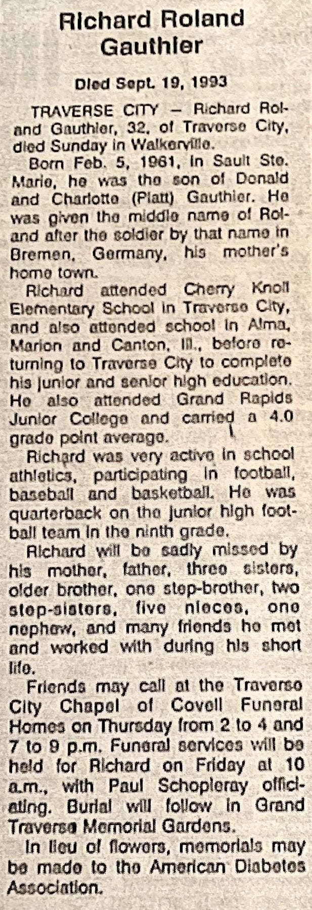 Richard GauthierSept. 19, 1993Oct 18, 2024ShareThanks for reading Traverse City Class of 1979 Memorial! This post is public so feel free to share it.SharePreviousNext